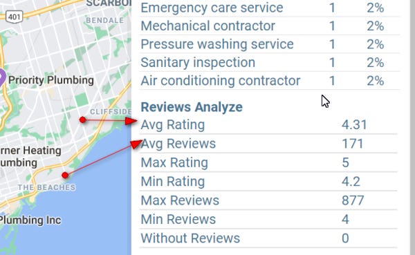 Una extensión para SEO Local que hace resumen de lo que estás viendo en el mapa: puntuación media, máxima, mínima, porcentajes de categorización y más información simplificada para analizar rápidamente.