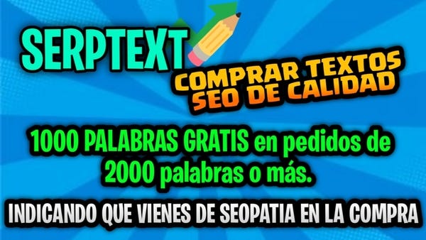 Por ser cliente de la Seopatía te dan 1000 palabras gratis si haces un pedido de 2000 palabras en contenidos.